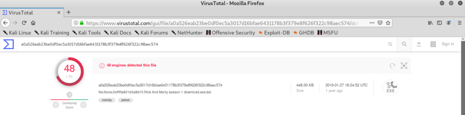 1.exe를 virustotal에 올리니 악성 프로그램으로 나온다. 토렌트를 통해 멀웨어가 유입되었음이 확실하다.