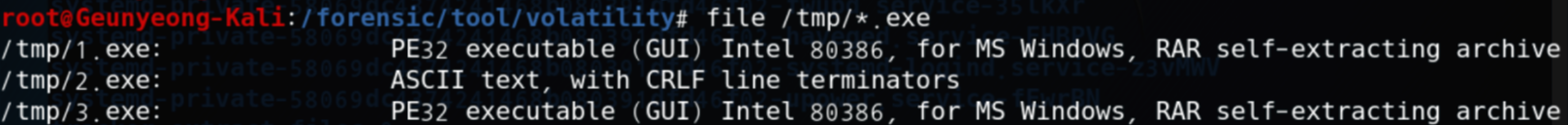 2번째 파일은 텍스트 파일이었고 나머지 2개(1, 3번째)가 실행파일이었다.