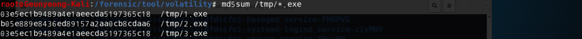 md5 해시값을 비교해보면 두 실행파일은 같은 파일임을 알 수 있다.