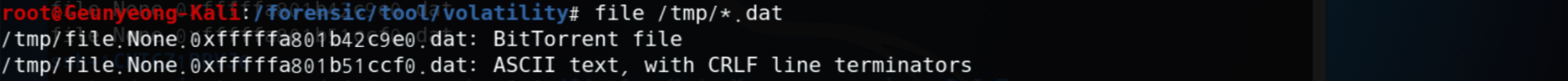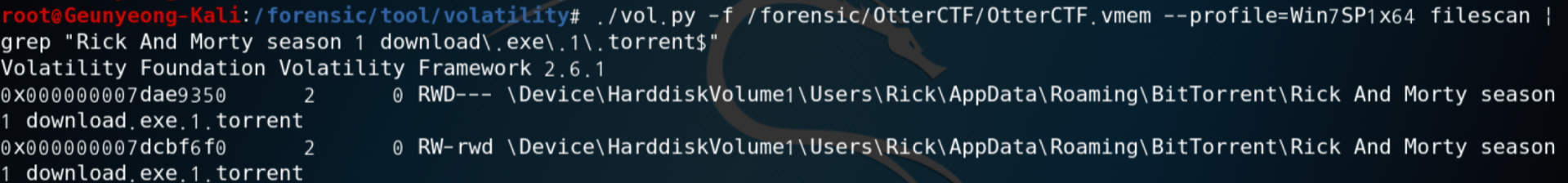 .torrent 파일을 덤프뜨기 위해 filescan으로 오프셋을 알아낸다.