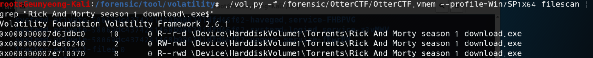 filescan으로 토렌트에 의해 다운로드 된 exe 파일을 찾아봤다. 총 3개가 나왔는데