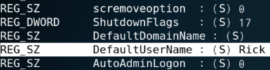 SOFTWARE\Microsoft\Windows NT\CurrentVersion\Winlogon 레지스트리를 확인해 마지막으로 로그온 한 사용자 이름을 확인한다. Rick이다.