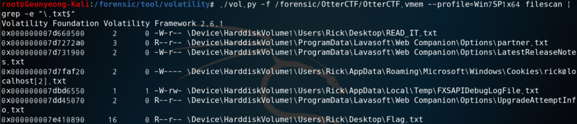 암호화 대상인 txt 파일을 먼저 찾아봤다. Rick 계정의 바탕화면에 Flag.txt가 보인다.