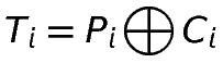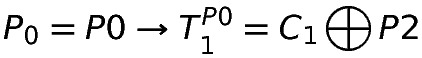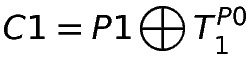 암호문을 만드는 과정은 P_{i} ^ T_{i}이다. 즉 P=P0+P1에 대한 C_{1}은 다음과 같이 구할 수 있다. 이를 C1이라 하자.