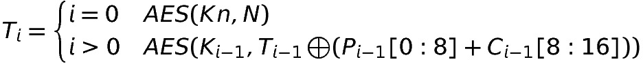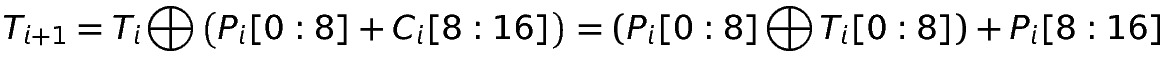 Ti+1 <- Ti ^ ( P[ i*16 : i*16+8 ] + Ci[ i*16+8 : (i+1)*16 ] )
