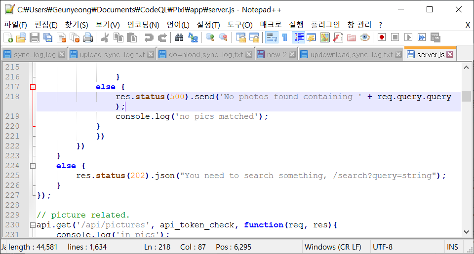 server.js의 218번줄을 찾아가면 사용자로부터 받은 요청을 별다른 필터링 없이 응답 데이터에 삽입해 반환하는 것을 볼 수 있다.