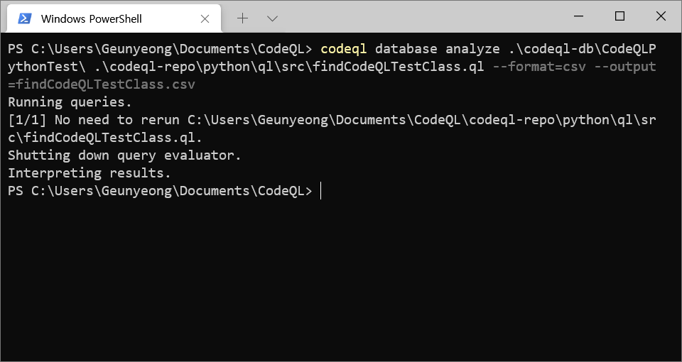 > codeql database analyze .\codeql-db\CodeQLPythonTest\ `