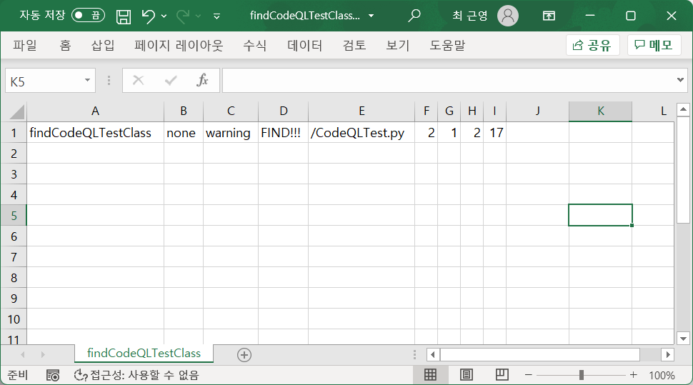 다음으로 findCodeQLTestClass.ql을 실행해보자.