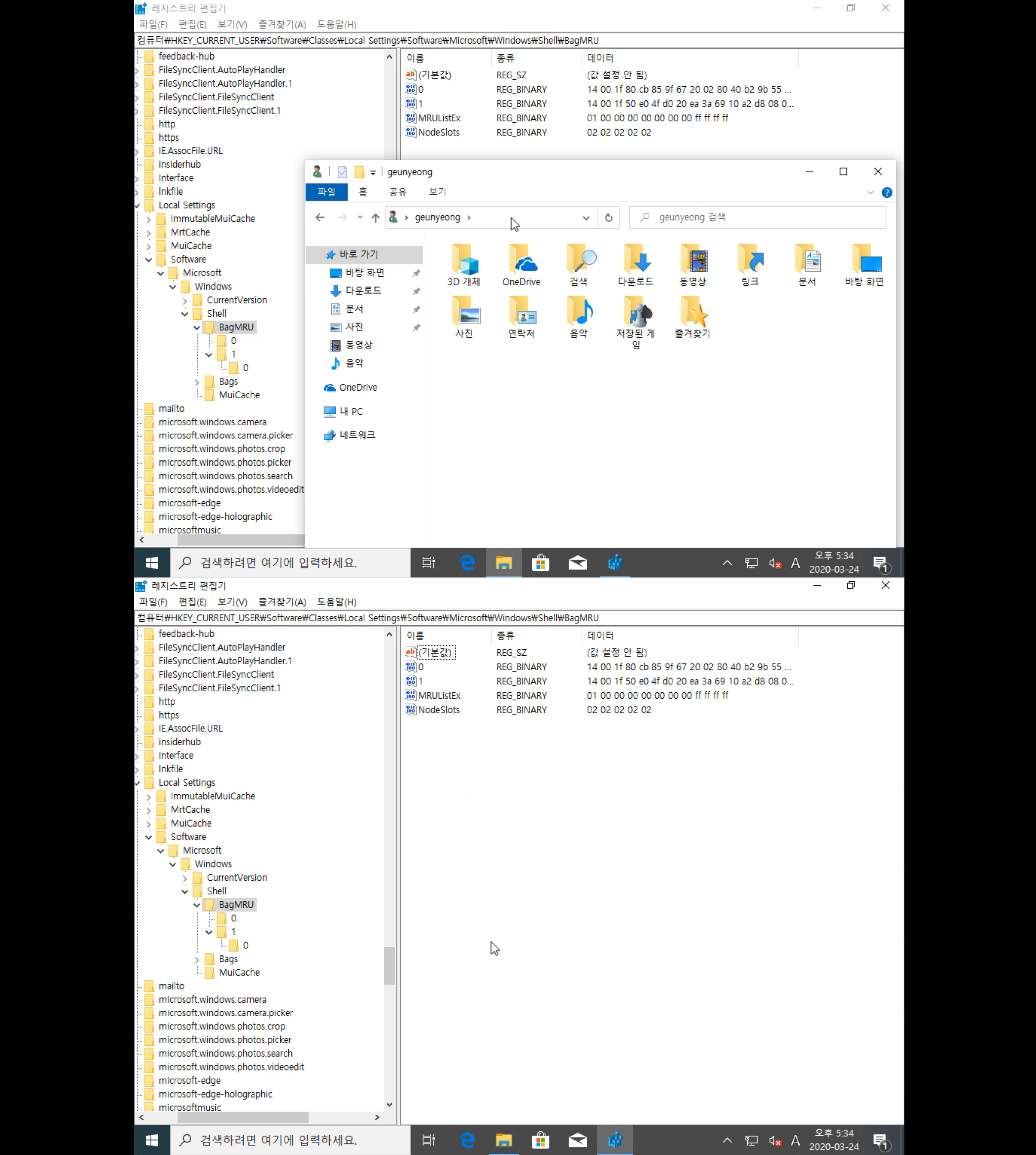나중에 확인해본 사실인데 사진 폴더로 종료하지 않고 이동만 해도 BagMRU\2 밑에 0 하위키가 만들어졌다.
