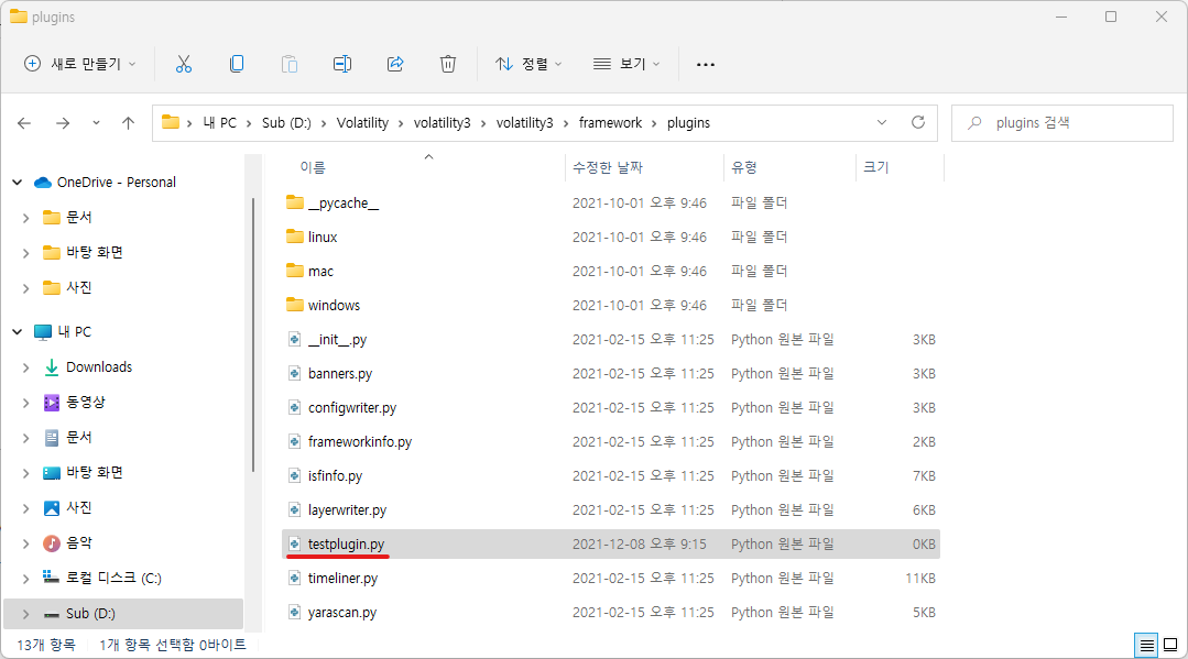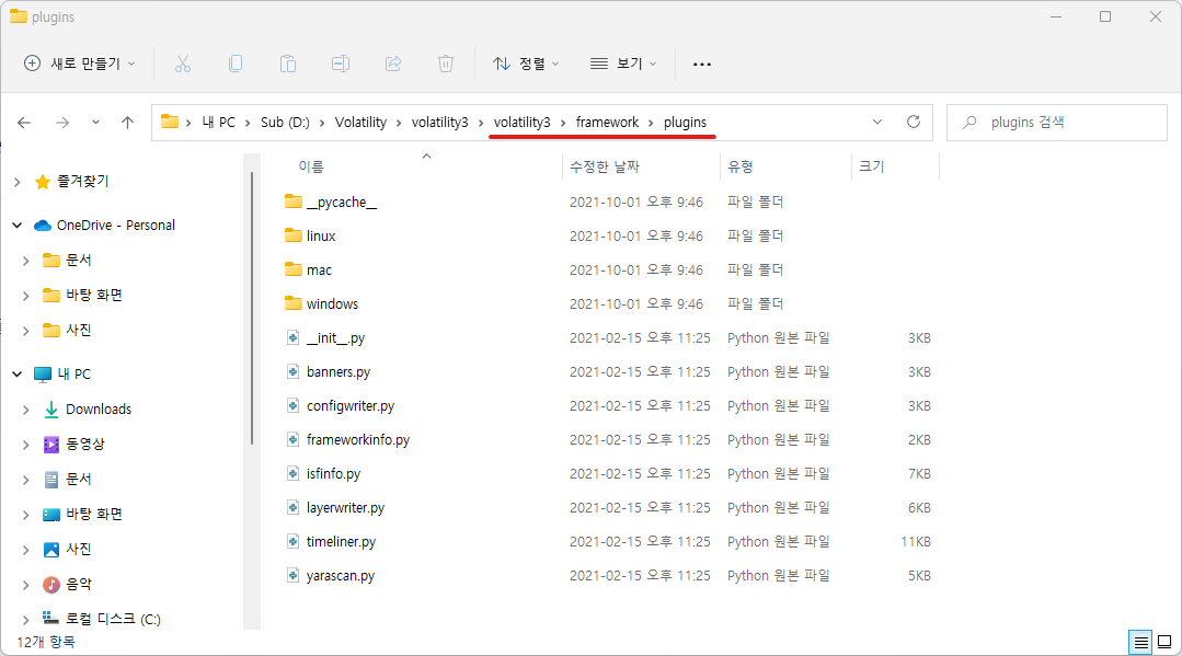 볼라틸리티 플러그인은 Volatility 3 기준으로 volatility3/framework/plugins 폴더에 위치한다.