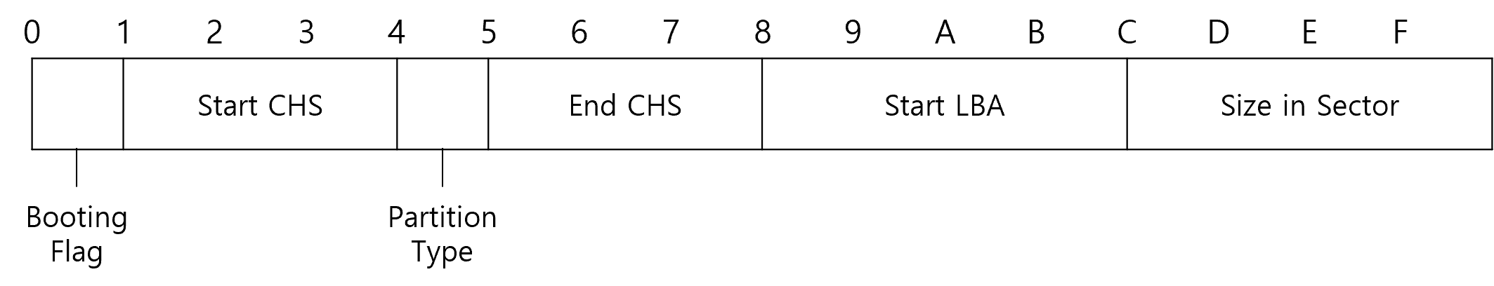 파티션 테이블 엔트리의 구조는 아래와 같다.