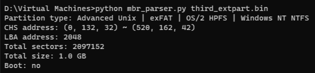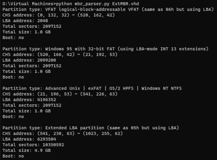 직접 제작한 MBR 파서로 VHD를 분석하면 아래 그림과 같다.