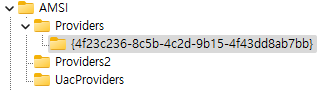 아래 그림은 Windows에서 AMSI Provider를 구분하는 데 GUID를 사용하는 모습이다.