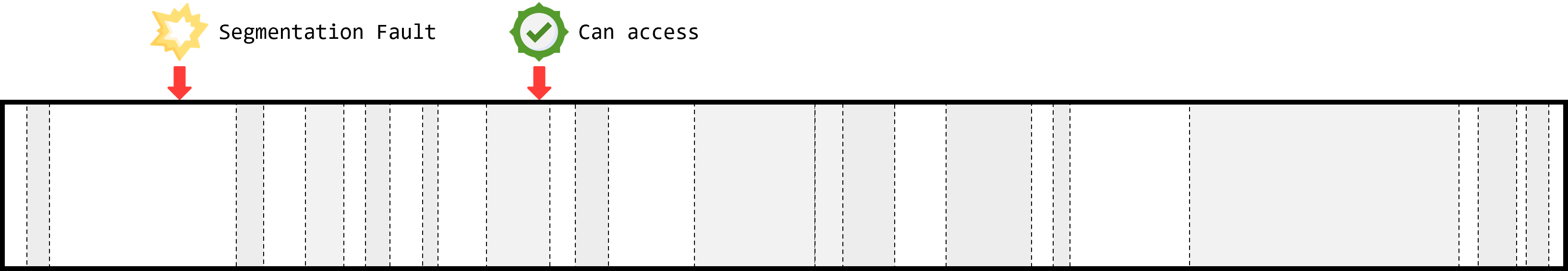 우리가 malloc이나 calloc으로 사용 가능한 메모리 공간을 할당받는 걸 생각해보자 (malloc과 calloc의 동작원리는 좀 다르지만 말하고 싶은 건 사용 가능한 메모리 공간을 할당받는단 것이다). 사용 가능한 메모리 공간을 할당받는다는 것은 아무 곳이나 접근할 수 있는 게 아니란 말과 일맥상통하다. 할당받지 않은 공간은 접근할 수 없다.